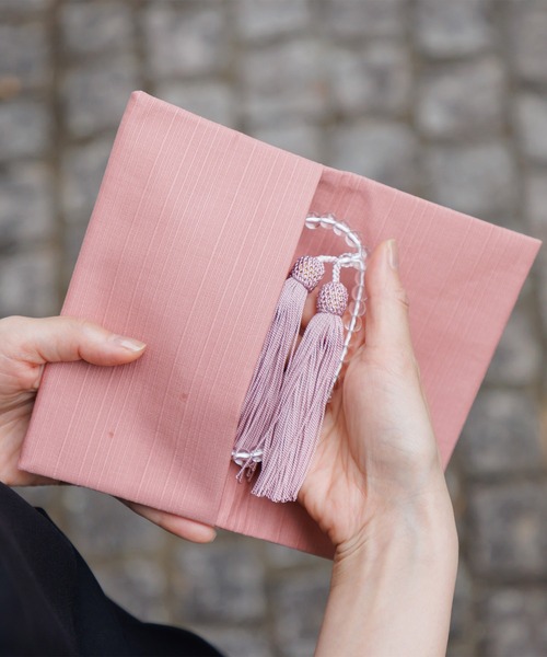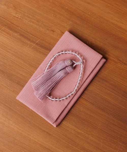 念珠の房の色に合わせたさくら色の念珠入れ。
