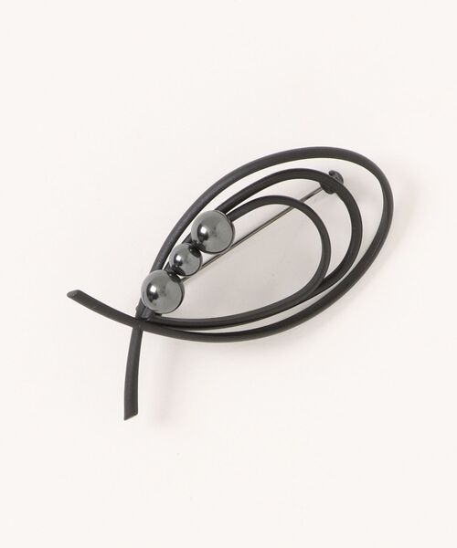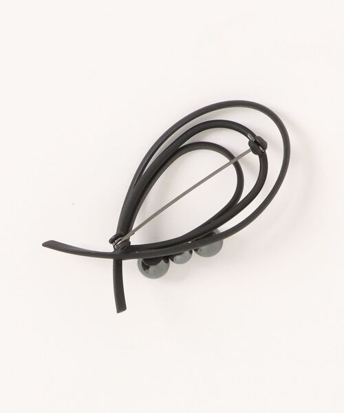 黒塗装のメタルにグレーパールがあしらわれたブローチ。