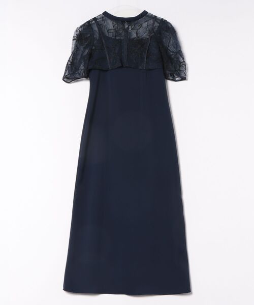 浮かび上がるようなフラワーモチーフの刺繍素材にチュールを重ねてきちんと感をプラス。