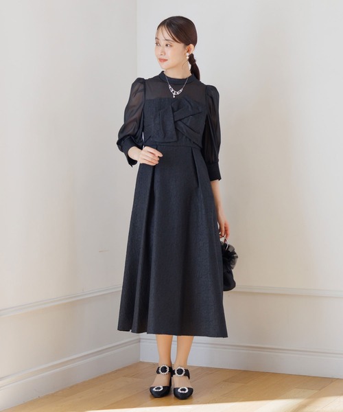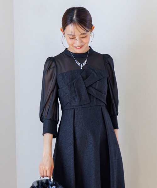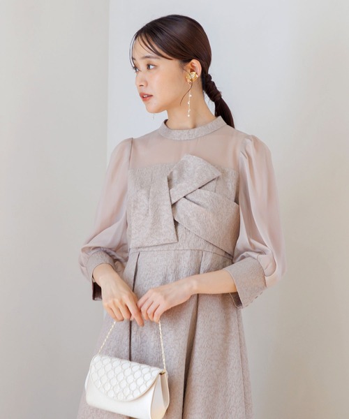 リボンジャガードドレス/結婚式/パーティー/お呼ばれ
