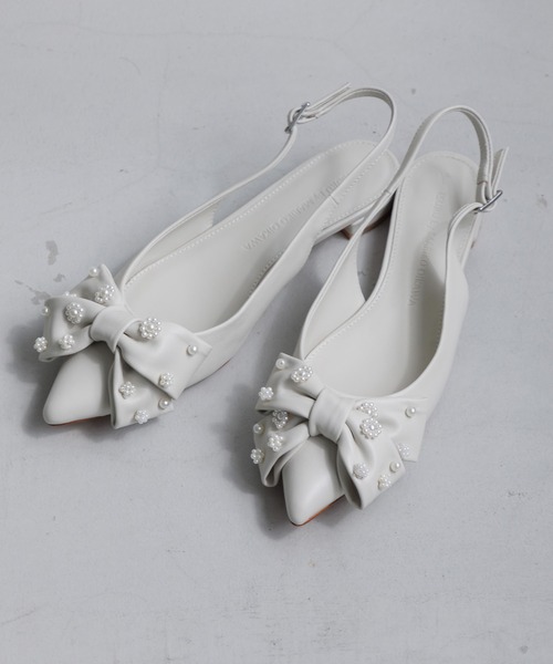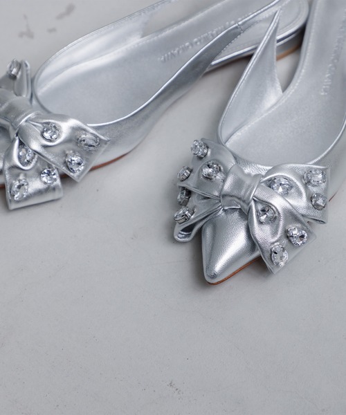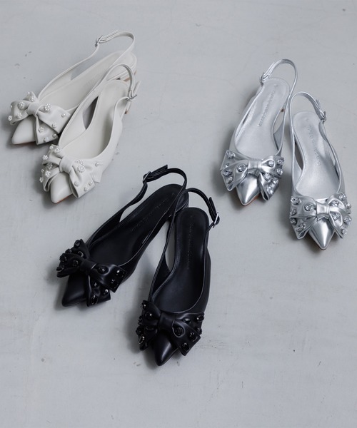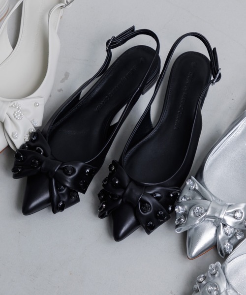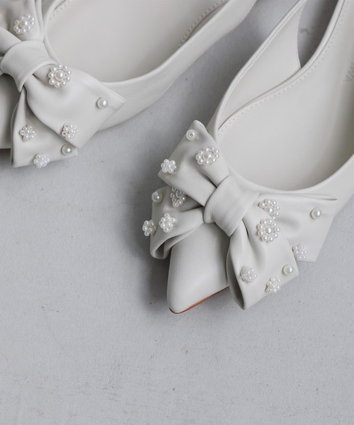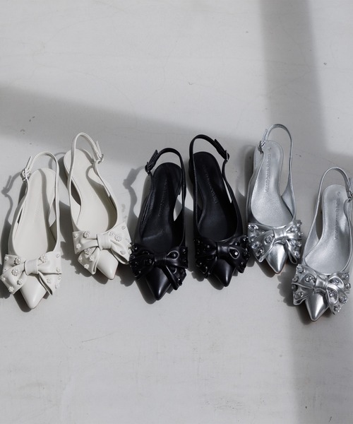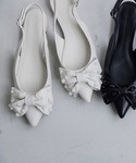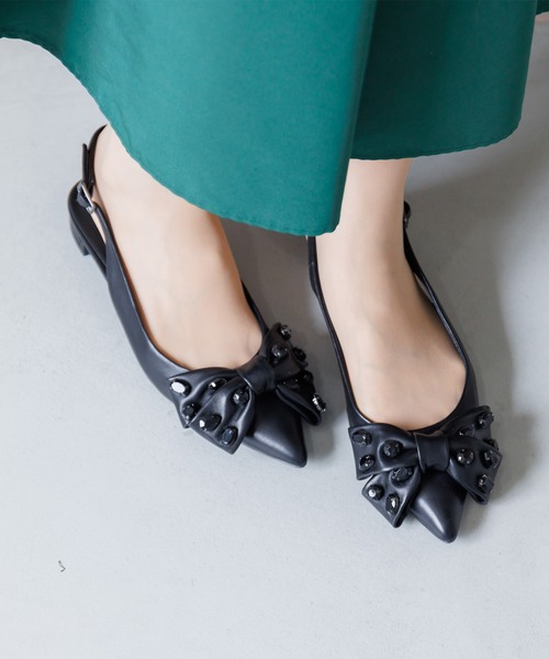 甲にのるビックリボンがアイキャッチ―なフラットパンプス。