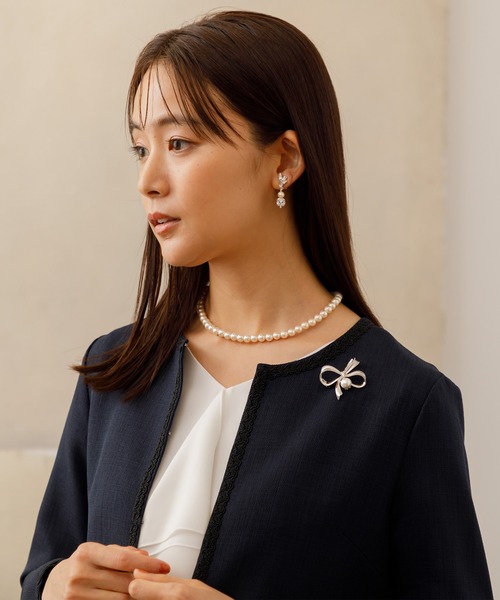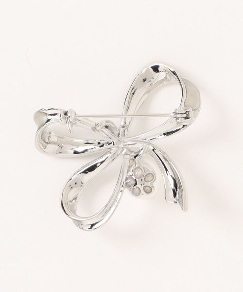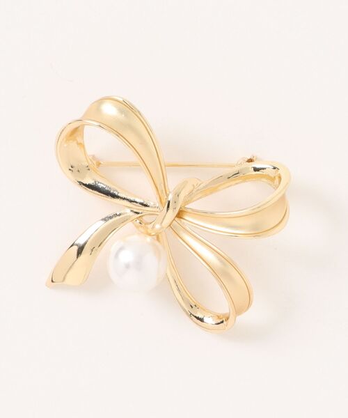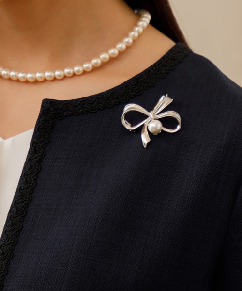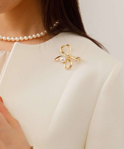 リボンのデザインにパールをあしらった、シンプルでフォーマルの装いにもぴったりなブローチ。