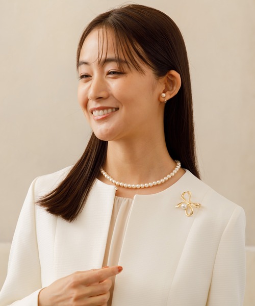 コサージュよりも控えめな雰囲気なので、さりげないアクセントに。
