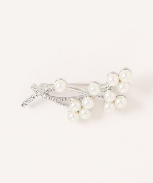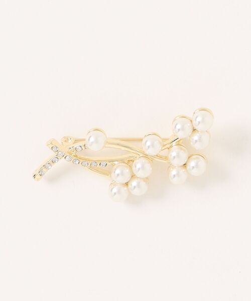 小粒のパールを使ったリーフモチーフなデザインは、シンプルでフォーマルの装いにもぴったりなブローチ。