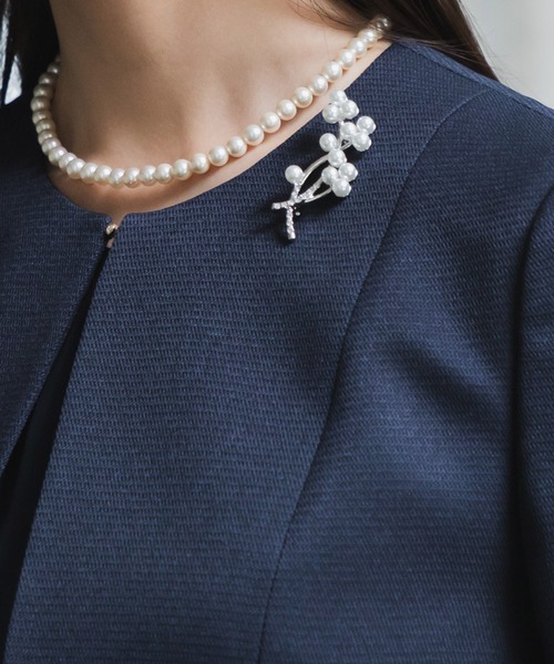 コサージュよりも控えめな雰囲気なので、さりげないアクセントに。