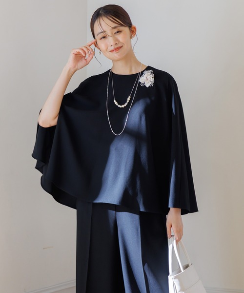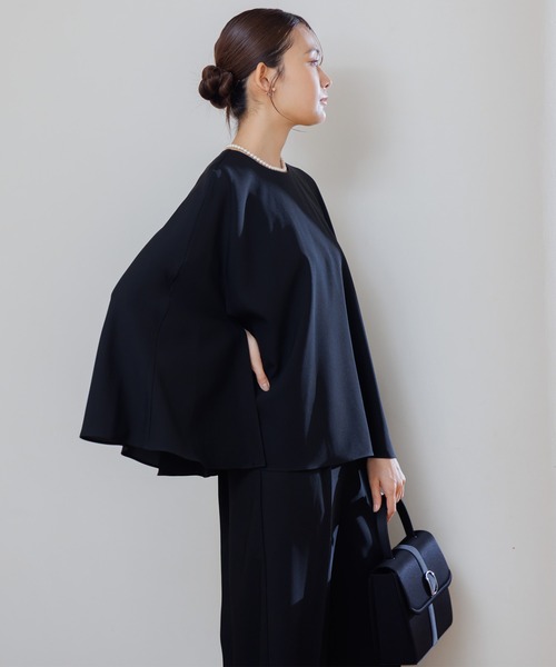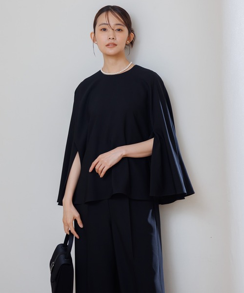 ブラックフォーマル(喪服)として着用頂ける、ブラウス+パンツのアンサンブルスタイル