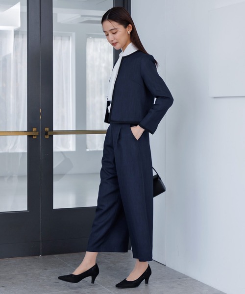 コンパクトジャケットとワイドパンツのセットアップスーツ