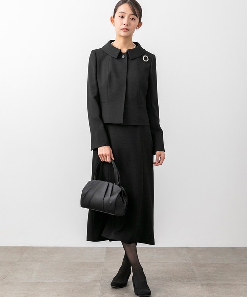 【前ファスナー】ステンカラージャケット&タイトロングワンピース ブラックフォーマルセットアップスーツ