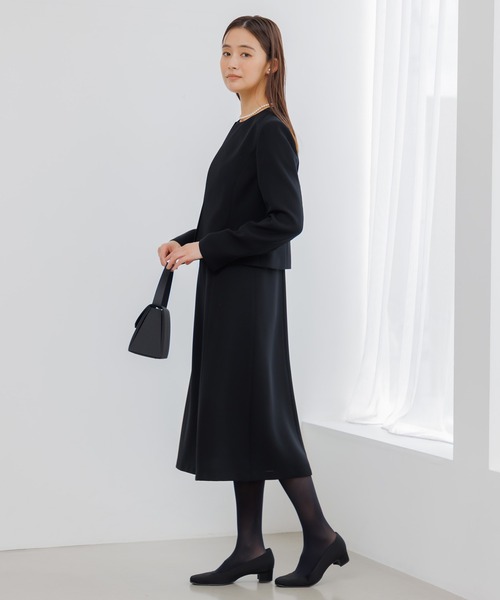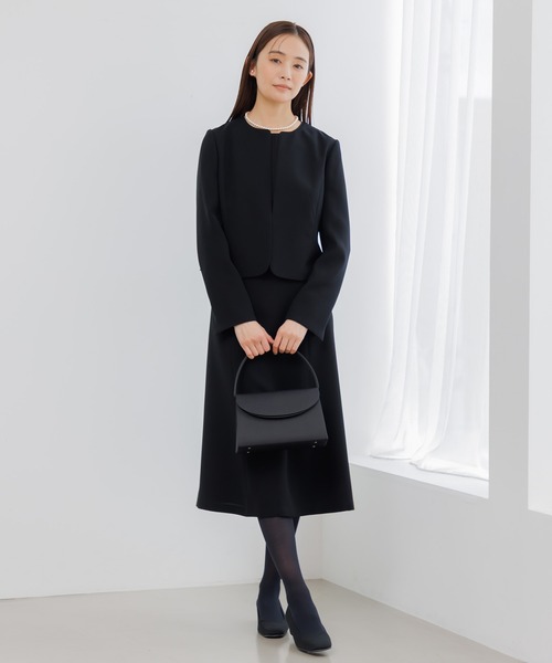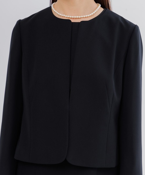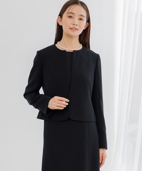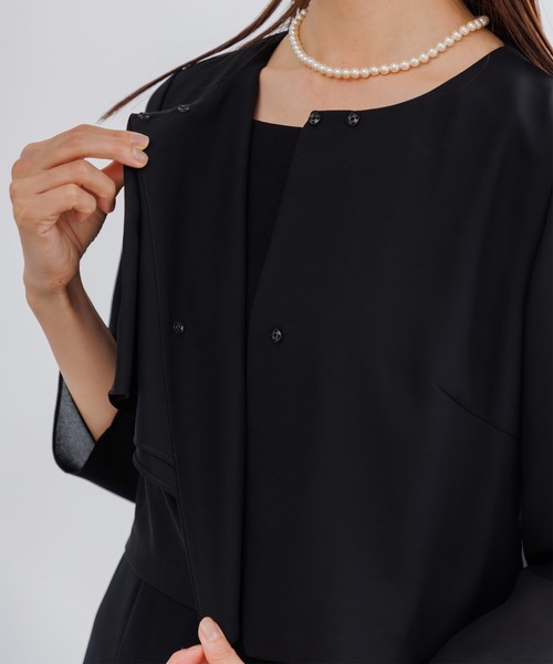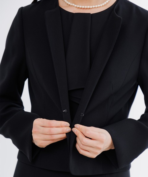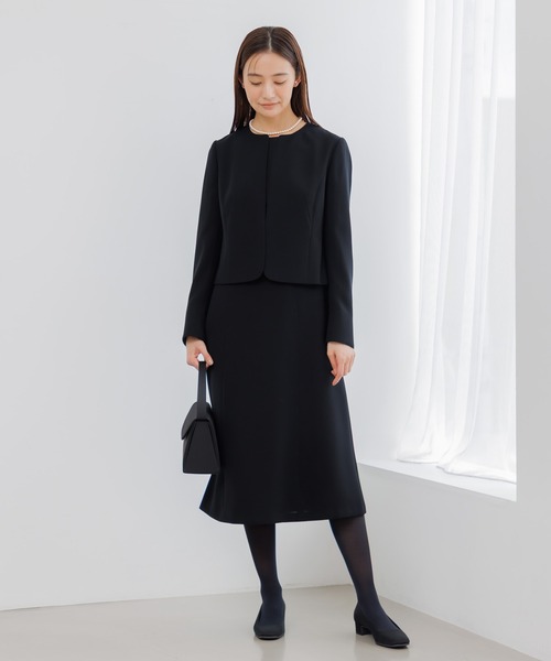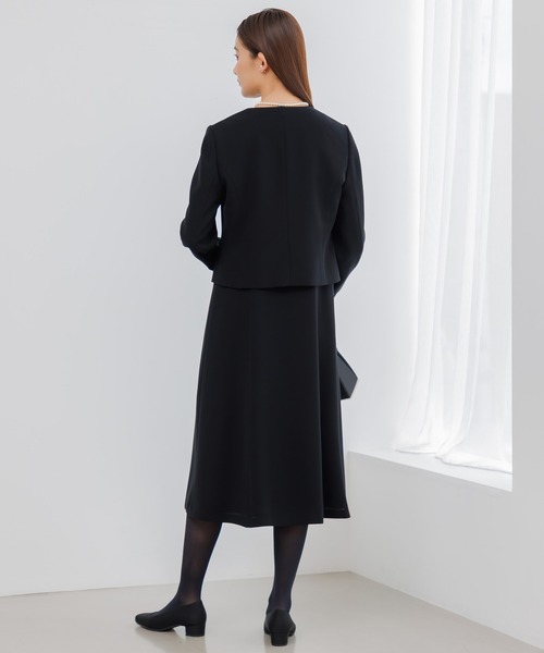 【WEB限定】【喪服】【洗える】ノーカラー&フレアワンピース ブラックフォーマルセットアップスーツ<大きいサイズ有>/卒業式(卒園式)入学式(入園式)七五三・お宮参り
