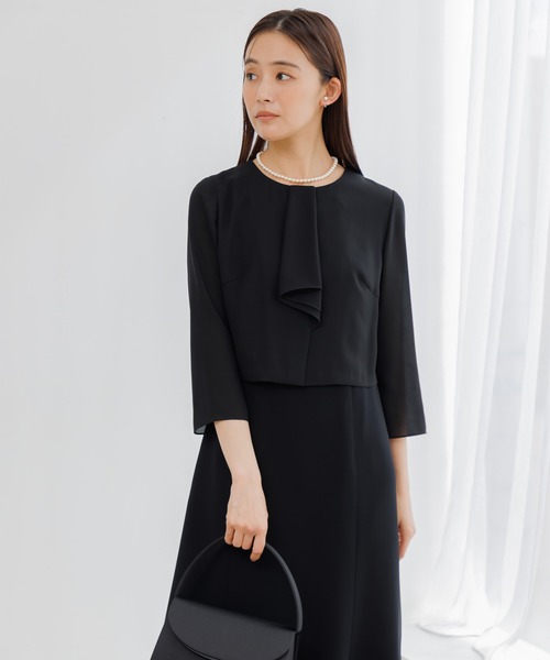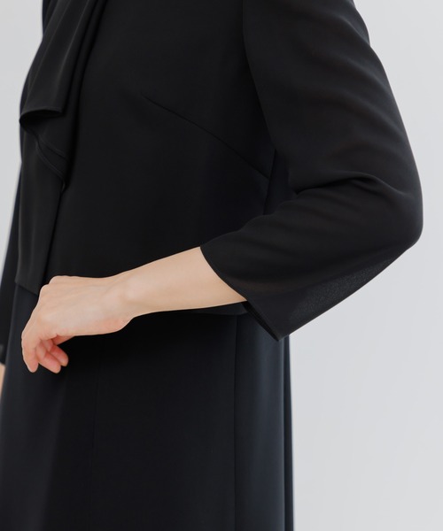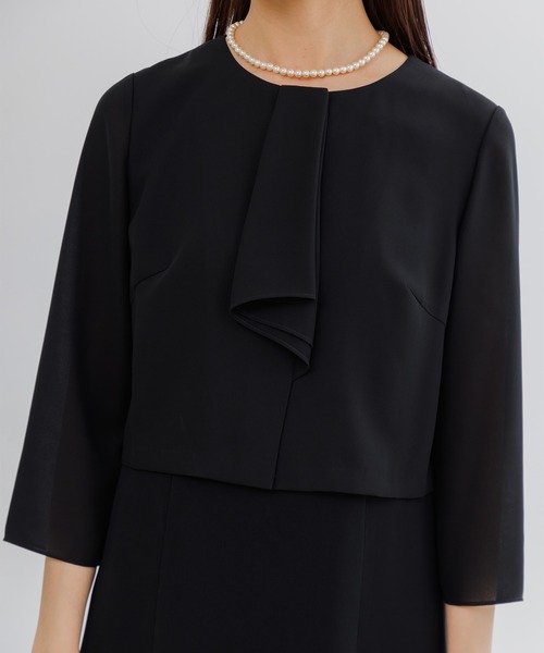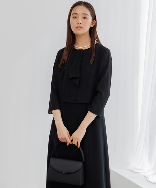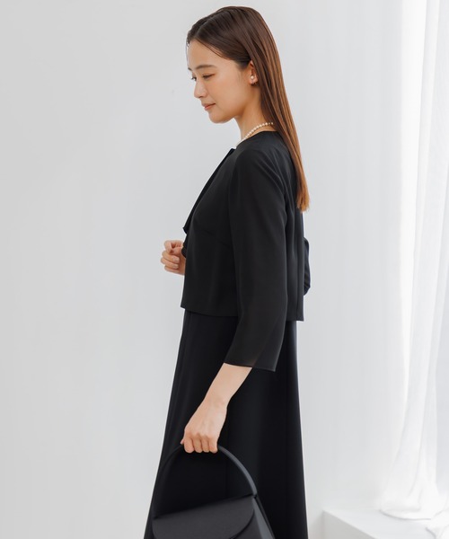 【洗える】【喪服】ノーカラージャケット&ボウタイ風セミフレアワンピース /レディース/ブラックフォーマル/卒業式(卒園式)入学式(入園式)七五三・お宮参り