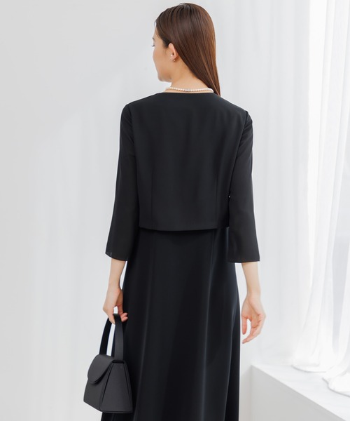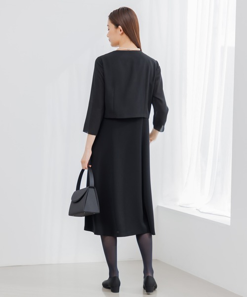 【喪服】ノーカラージャケット&フレア レディースワンピース<大きいサイズ有>/ブラックフォーマル