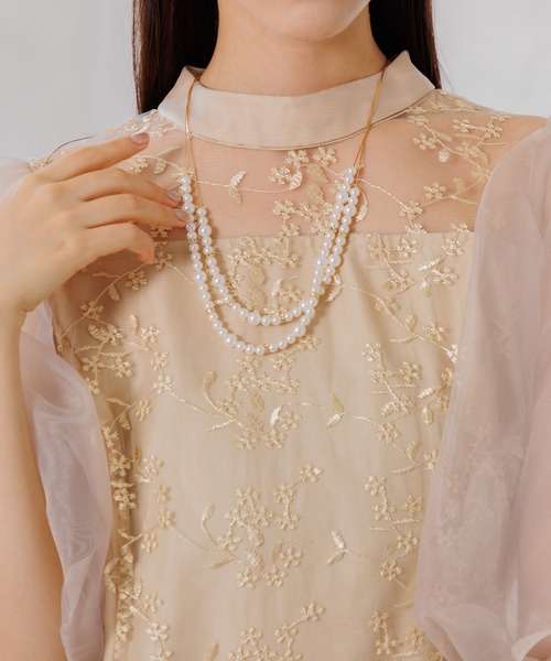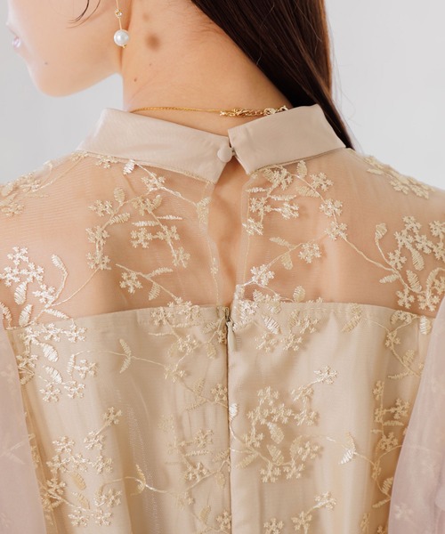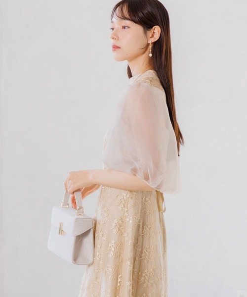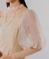 オーガンジー素材のボリュームパフスリーブが印象的で、