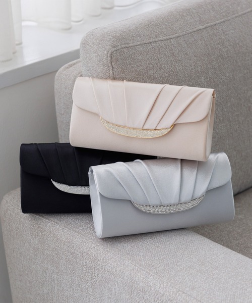 シルキーなサテンを使用したエレガントなクラッチバッグ。