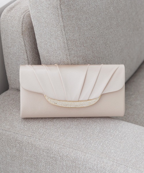 プリーツデザインのクラッチバッグ/お呼ばれ/結婚式/パーティー/母ドレス
