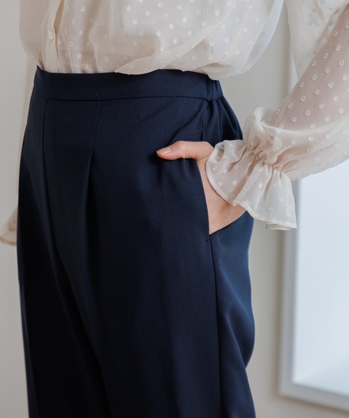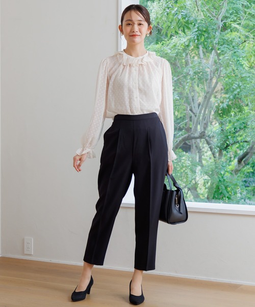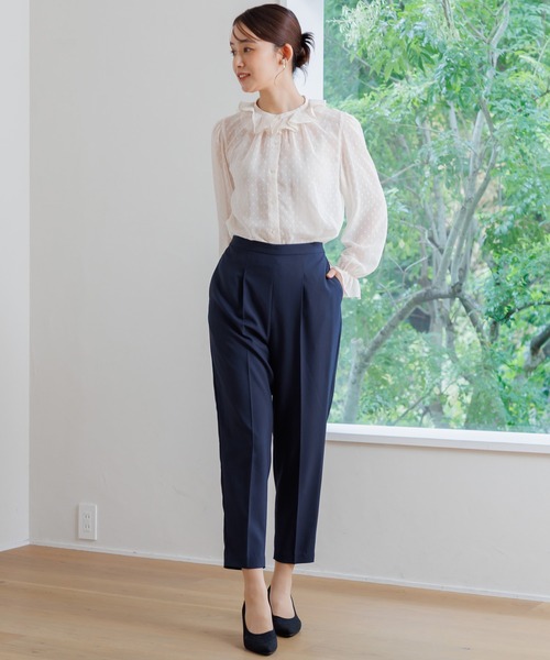 troisiemeCHACO同素材ブラウス(ブラウス品番0406908)とセットアップ可能なテーパードパンツ。
