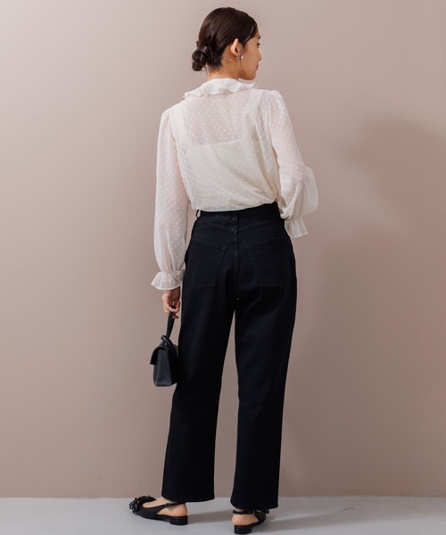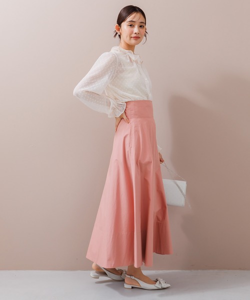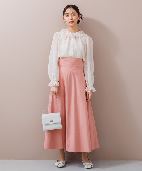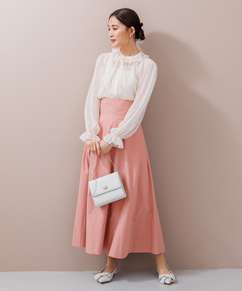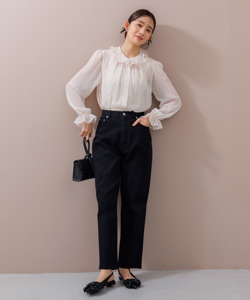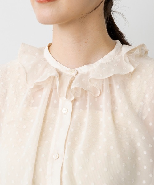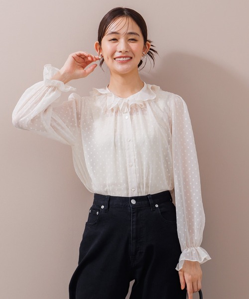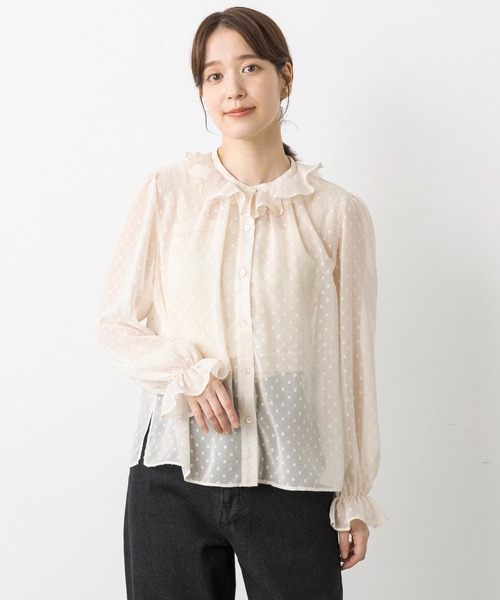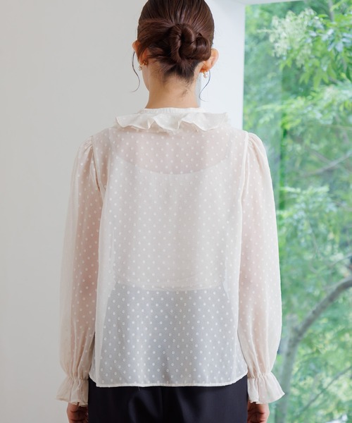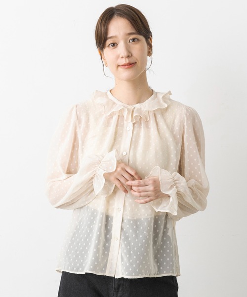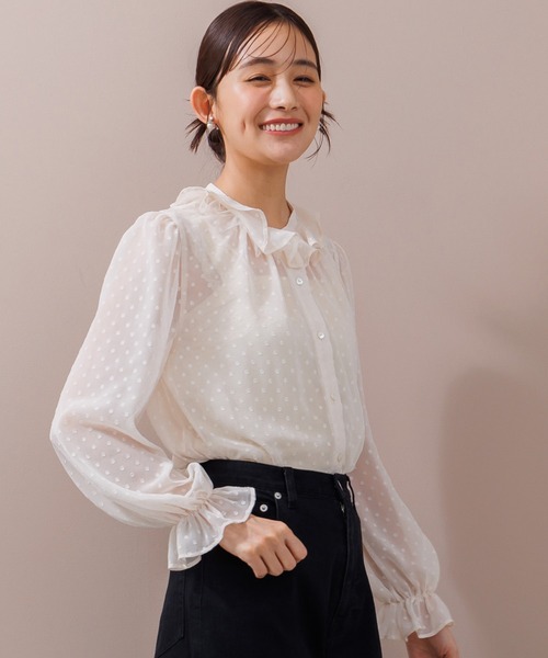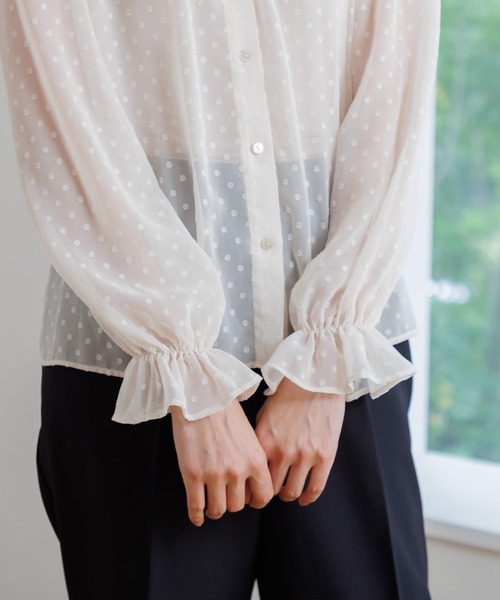 滑らかなシフォンジョーゼット素材に人気のドットが可愛らしいブラウス。