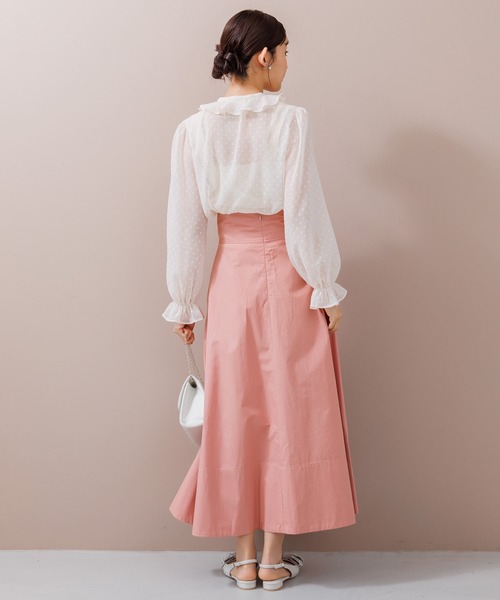 袖口はギャザー&フレアのボリューム感のあるアクセントデザインに。