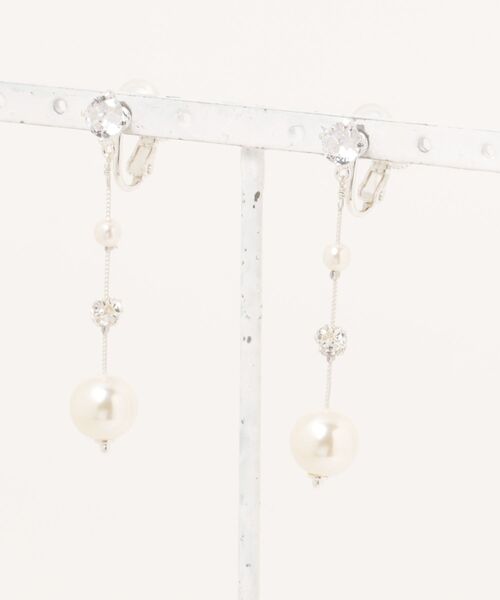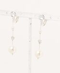 ジルコニア・ガラス・パールの素材ミックスが華やかなフリンジ型イヤリング。