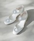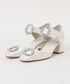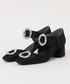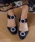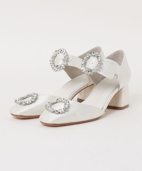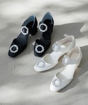 ドットジャガードが艶めきのある足元へ。甲のバックルベルトとチャンキーヒールで履き心地と安定感も抜群。