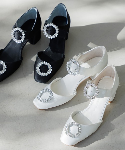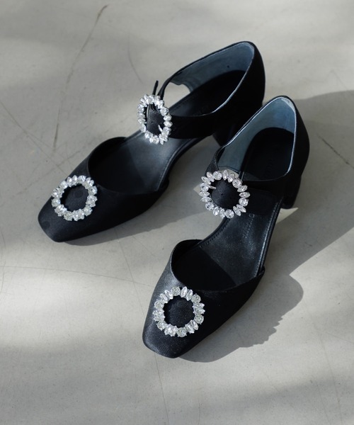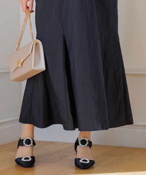 輝くバックルと、クラシカルなシルエットがリュクスな印象。