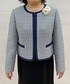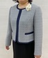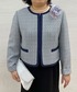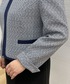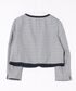 ノーカラーのすっきりとしたフォルムに、前立てとポケット口にパイピングでアクセントをつけました。