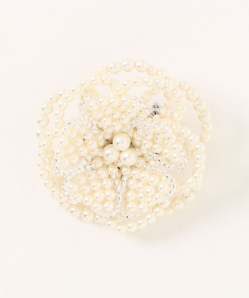 フェイクパールを編み上げた花びらは、ビーズのトリミングをあしらうことでより立体的で美しい仕上がりに。
