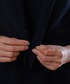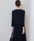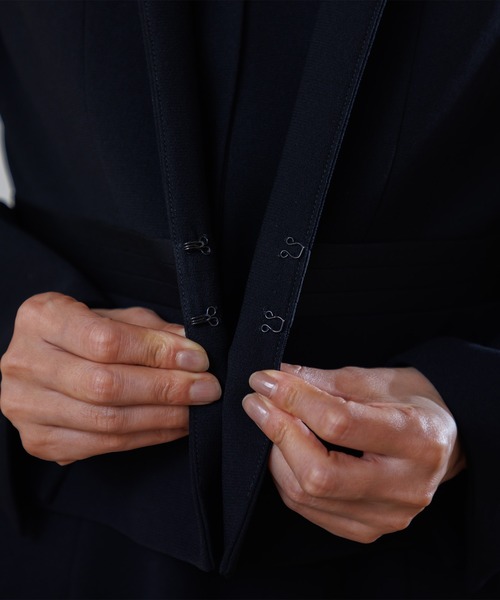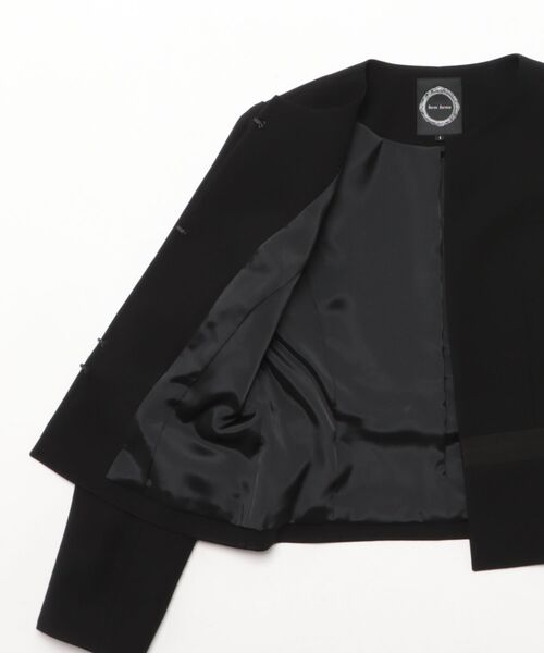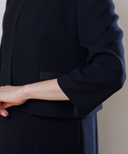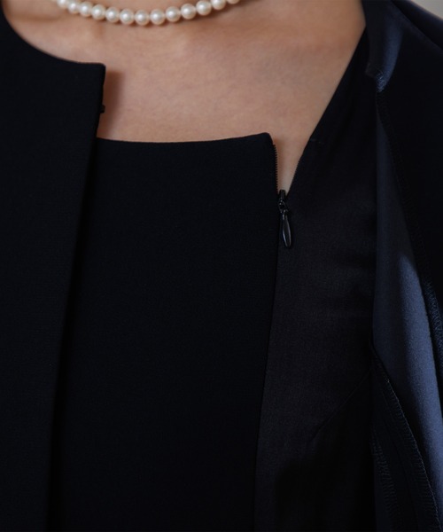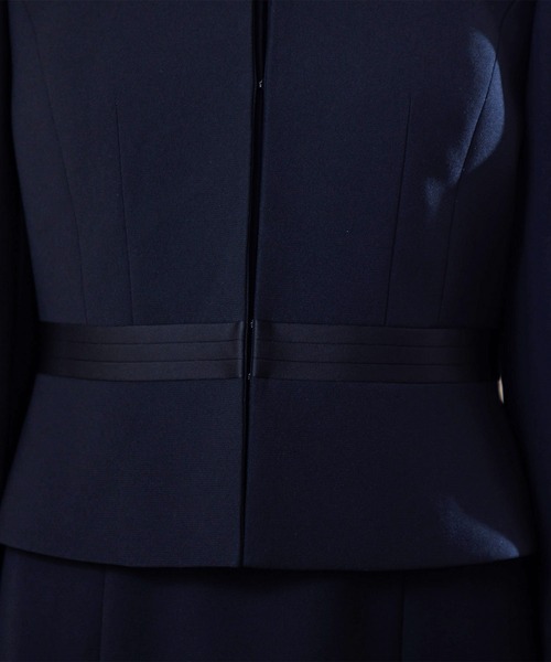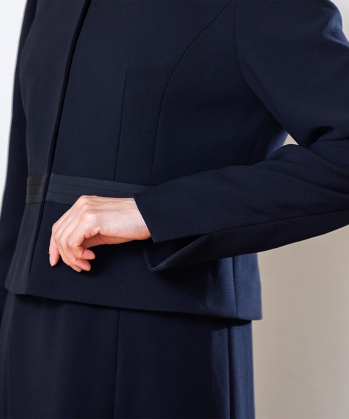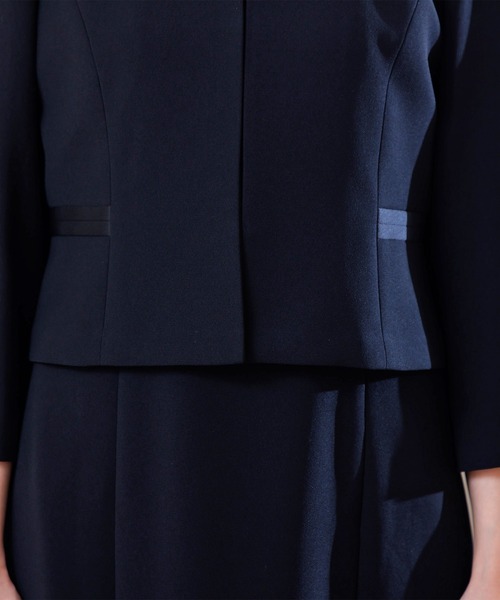 ジャケットは3本、ワンピースは2本のラインに切り替えたサテンのアクセントがお洒落。