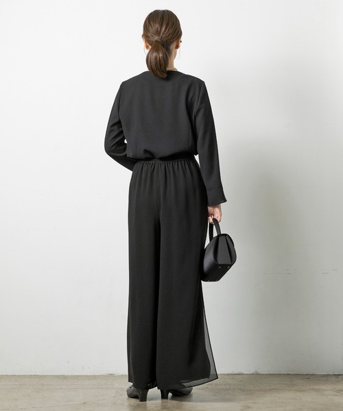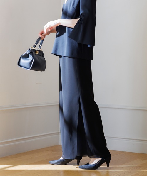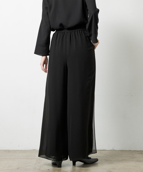 2枚重ねのジョーゼットは上側1枚目にサイドにスリットが入り動きで程よく揺れるエレガントなデザインに仕上げました。