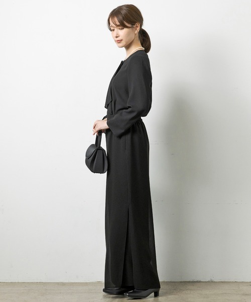 ≪前開き≫ロールカラージャケット&セミフレアワンピース/喪服・礼服/ブラックフォーマルスーツセット