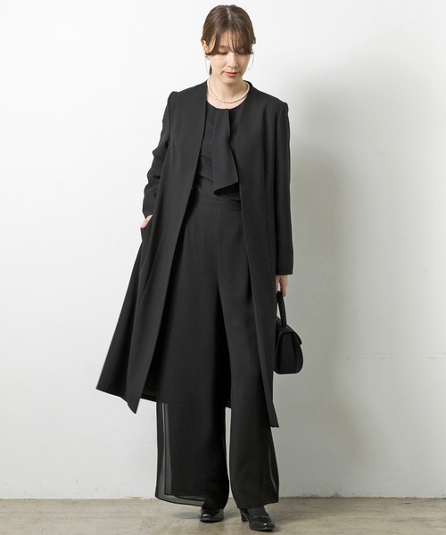 【WEB限定】【喪服】【洗える】ノーカラー&フレアワンピース ブラックフォーマルセットアップスーツ<大きいサイズ有>/卒業式(卒園式)入学式(入園式)七五三・お宮参り
