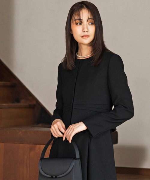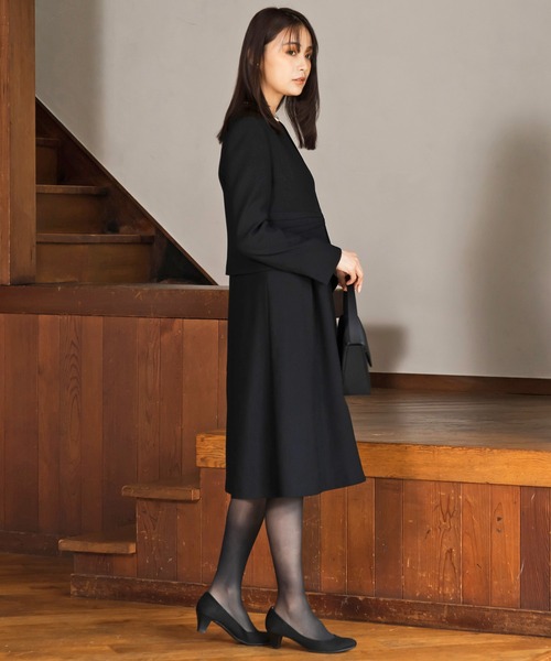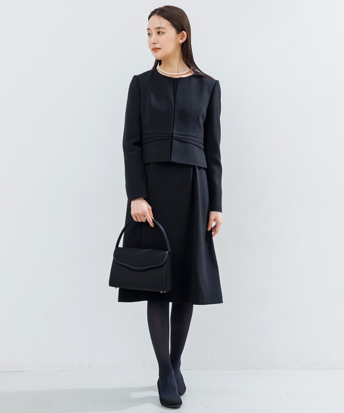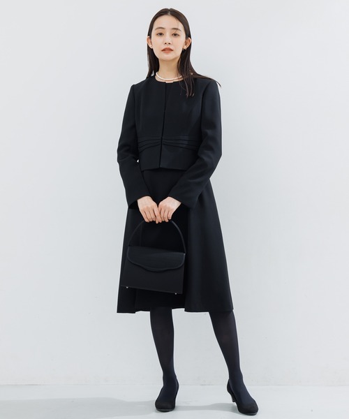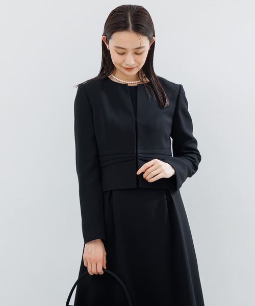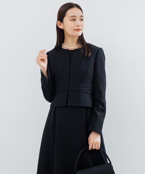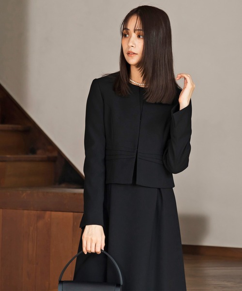 【WEB限定】【喪服】【洗える】ノーカラー&フレアワンピース ブラックフォーマルセットアップスーツ<大きいサイズ有>/卒業式(卒園式)入学式(入園式)七五三・お宮参り
