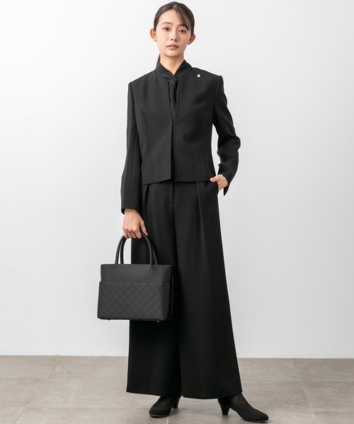 ボウタイブラウス付き ワイドパンツブラックフォーマルスーツ