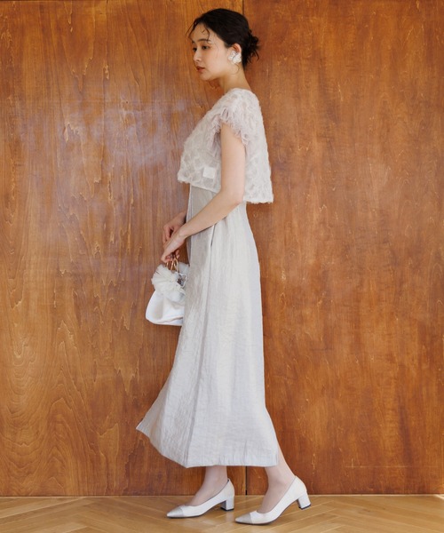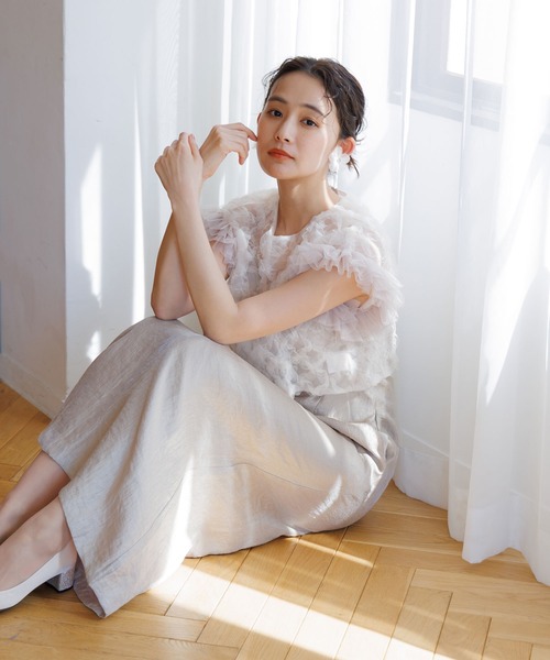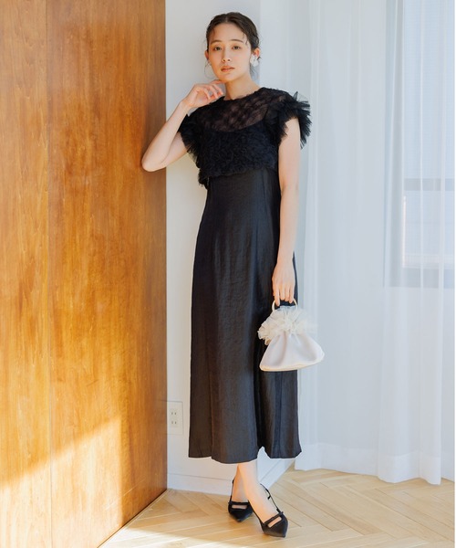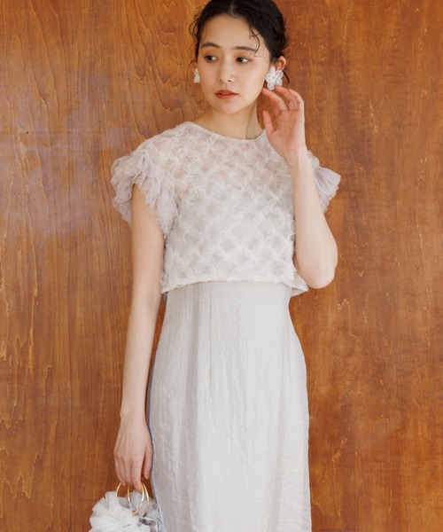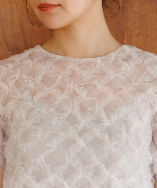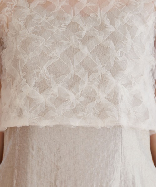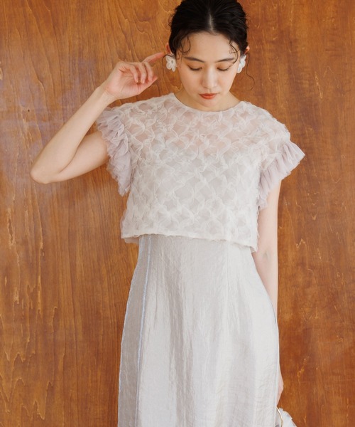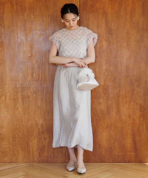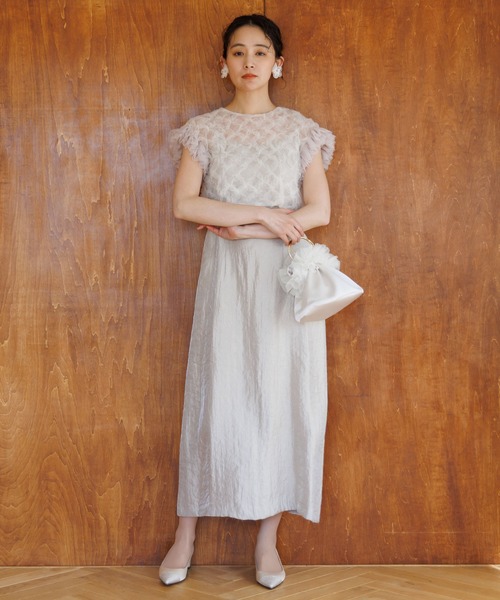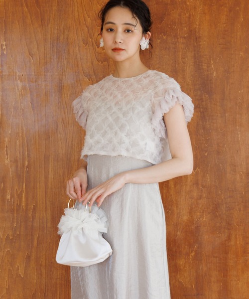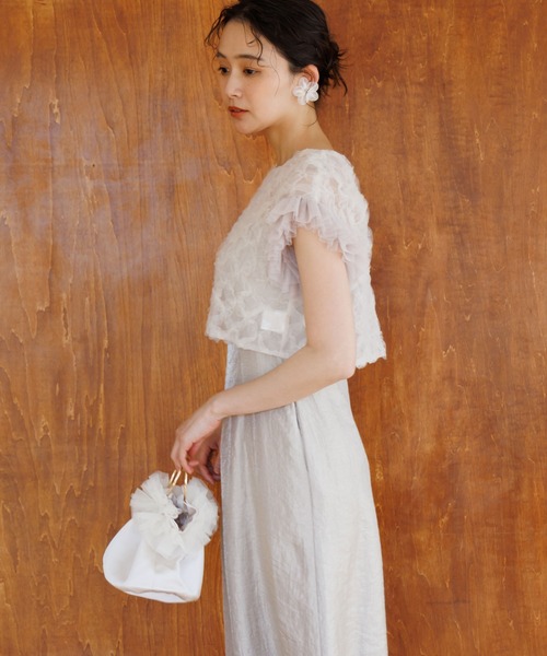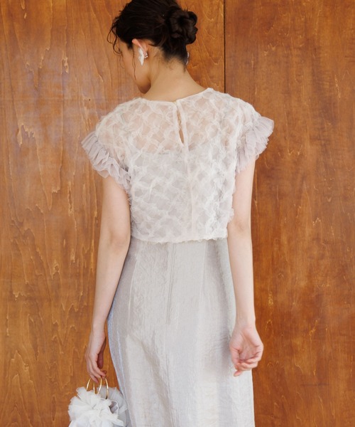 存在感たっぷりの立体チュールブラウスが目を惹くドレス。