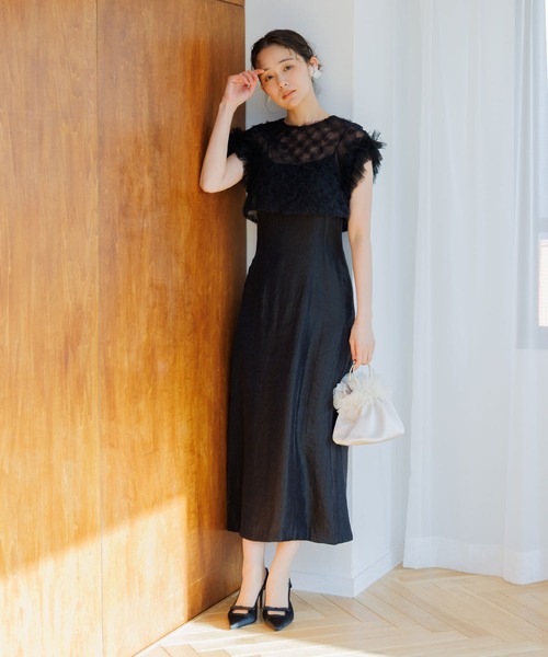 程よい光沢感のサテンドレスとキャッチーなブラウスは