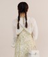 バックスタイルもクロスデザイン&クルミボタンにすることで、髪の毛をアップスタイルにしても映えるデザインに。