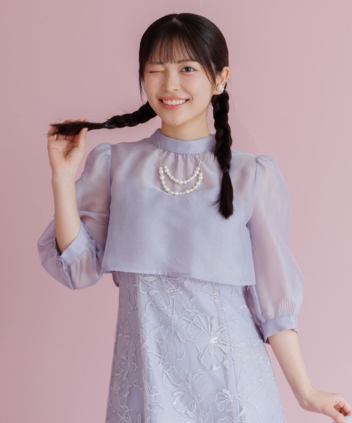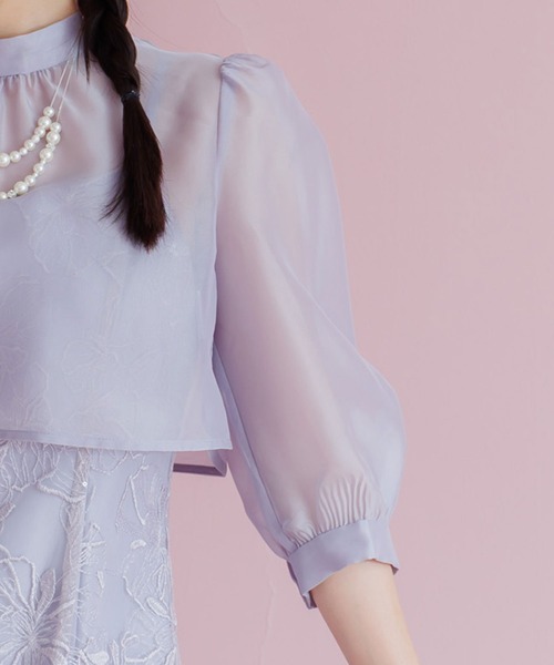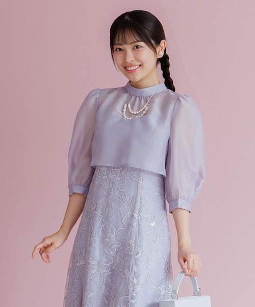 ほんのりシアーで上品にまとめたブラウスをかけあわせたformformaオリジナルのワンピースドレス。