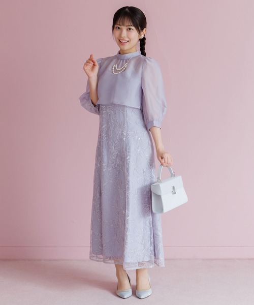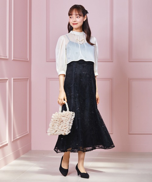 【formformaオリジナル】シアーブラウス×スパンコール刺繍ドレス/結婚式/パーティー/お呼ばれ