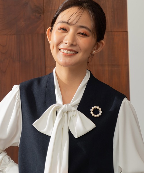 コサージュよりも控えめな雰囲気なので、さりげないアクセントに。