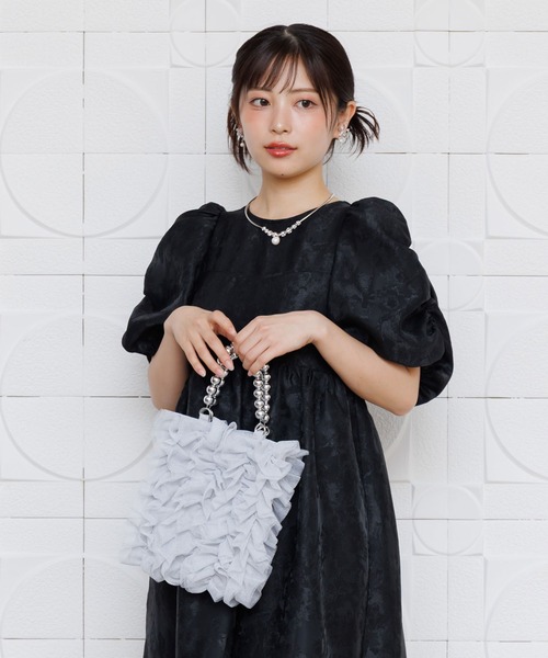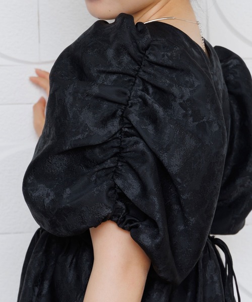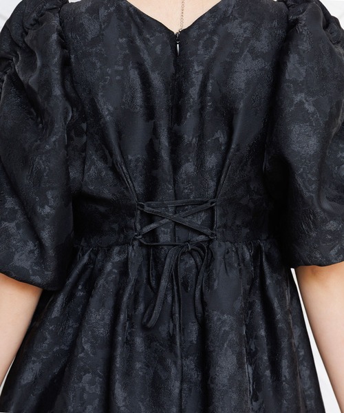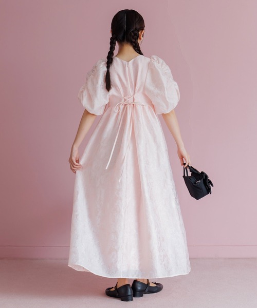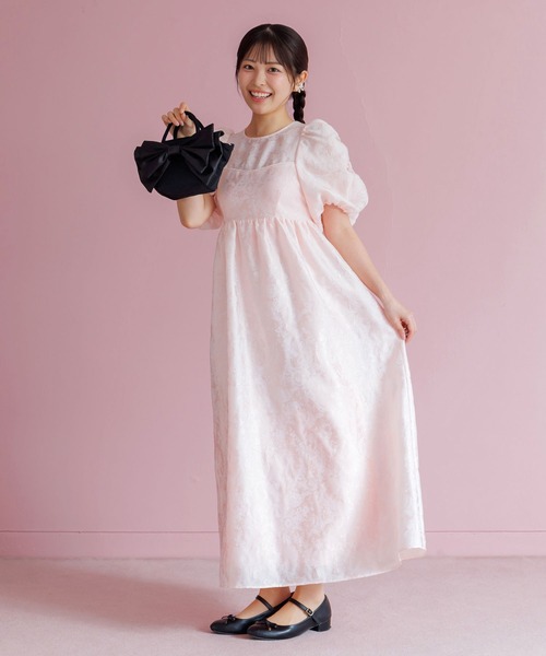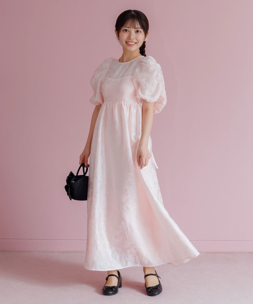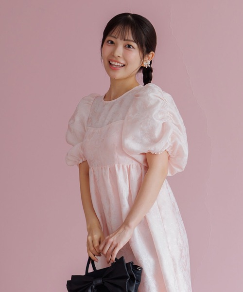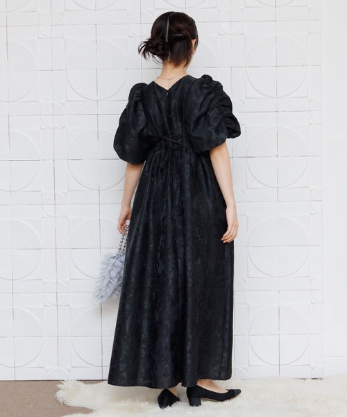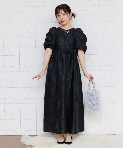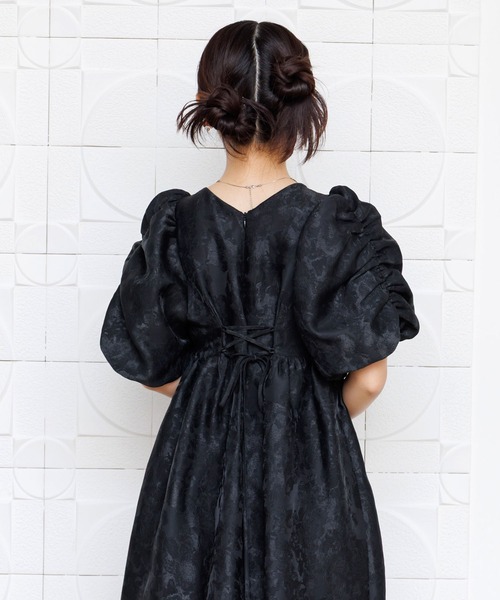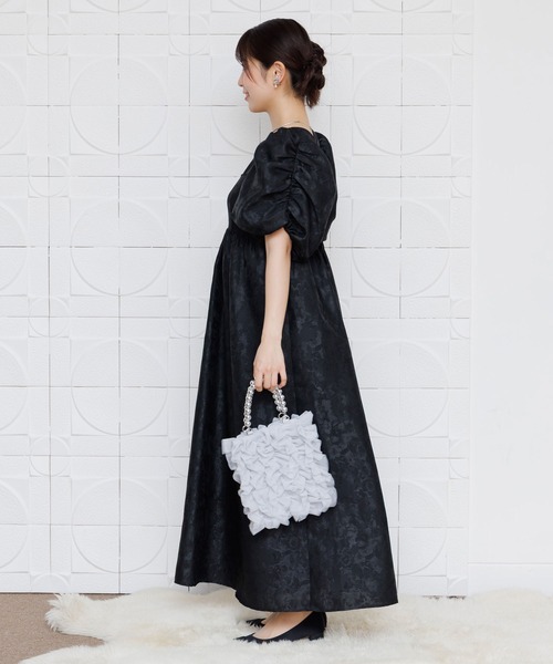バブルスリーブジャガードドレス/結婚式/パーティー/お呼ばれ