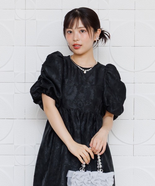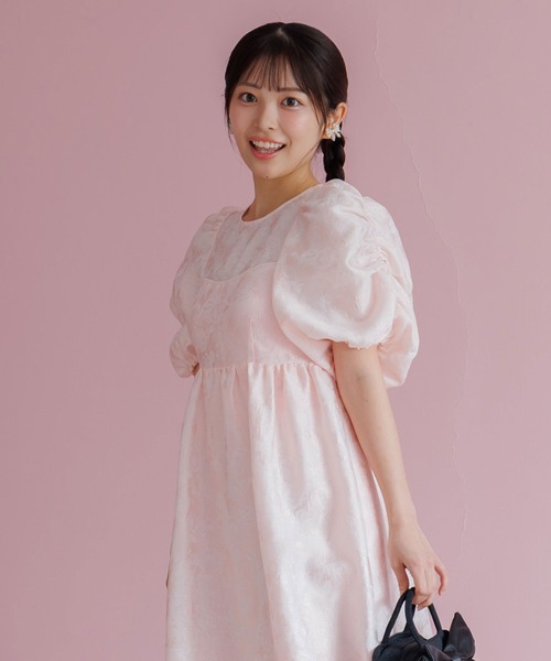 ドレスブランド<ANDRESD>で人気のバブルスリーブ ジャガードドレスを別注。