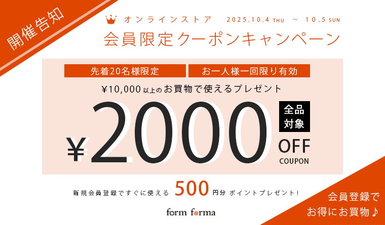 【開催告知】会員限定クーポンキャンペーンのご案内 | form forma(フォルムフォルマ)|【公式】通販サイト